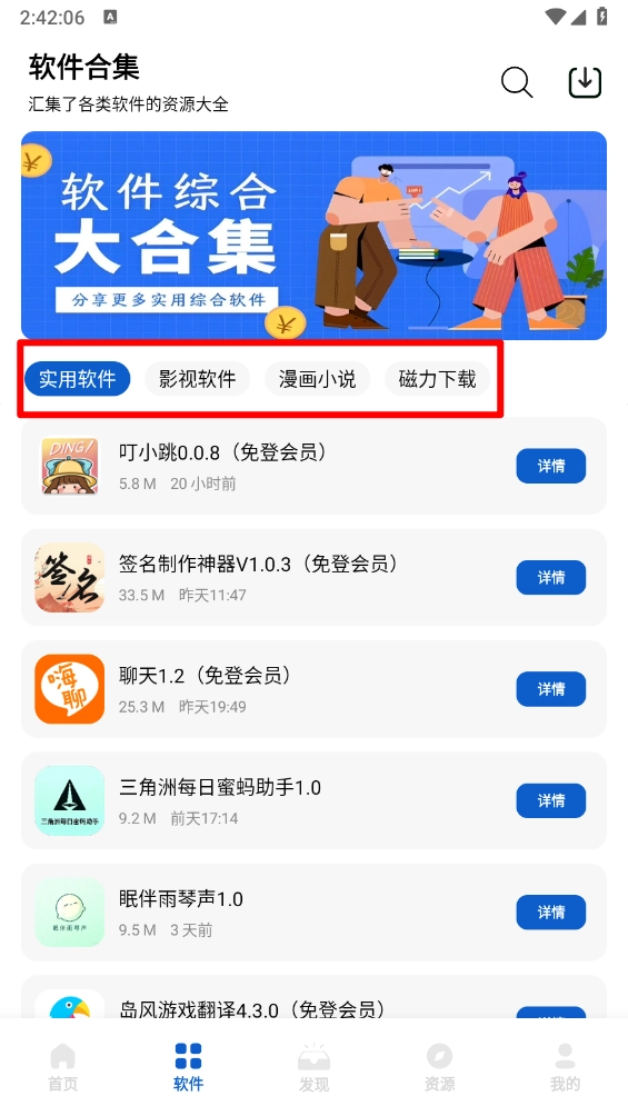 奇漫精简版是一款功能丰富的综合工具,它不仅能提供实用的软件资源,还汇集了影视、漫画、小说、游戏等多种娱乐内容。你可以通过发现专区和资源专区轻松找到感兴趣的内容,也能和其他用户分享交流,一站式满足你的工具使用与休闲娱乐需求。