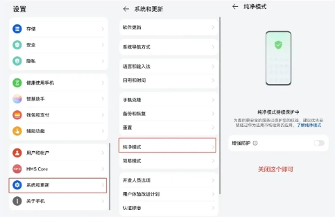 华为鸿蒙系统安装应用时需要先关闭纯净模式,并且断网操作;其他多数系统的相关设置则通常可以在手机管家里面找到。