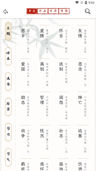 在书阁功能中可分类查看诗词。