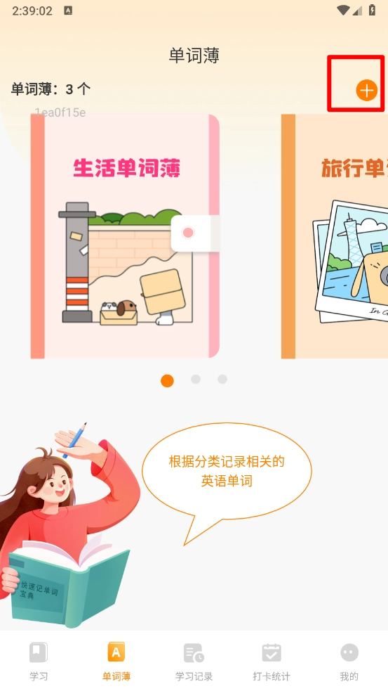 在"单词薄"板块,点击"+"号可以创建单词薄。