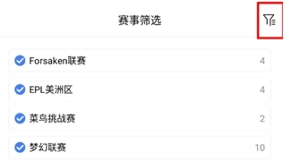 可以在主页面直接选择,也能通过赛事筛选功能,挑选出自己感兴趣的比赛类型以及具体赛事。