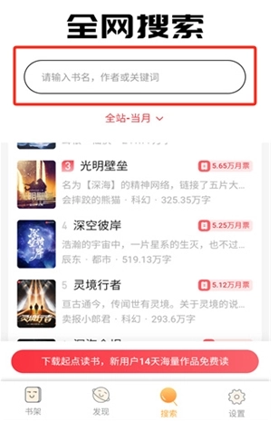 全网跨站搜索,百万书籍免费看,预读随身带;