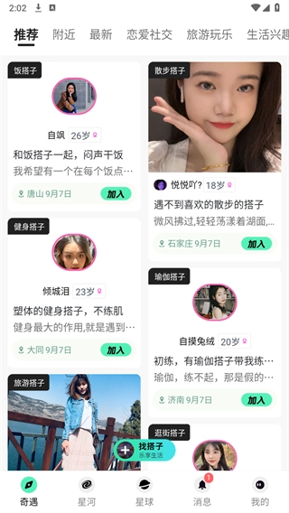 不管是想找一起聊电影的同好、约饭的美食搭子,还是结伴旅行的伙伴、组队开黑的游戏战友,搭子星球上都聚集着超多志同道合的年轻人。只需一键匹配,就能轻松找到和你灵魂契合的搭子,一起开启丰富多彩的线下聚会与趣味冒险!