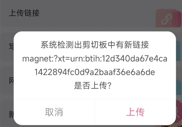 回到磁力宅,软件会自动识别剪贴板里的链接;要是没自动识别,大家也能手动上传。