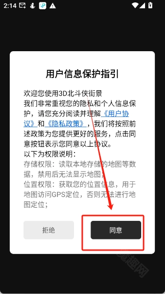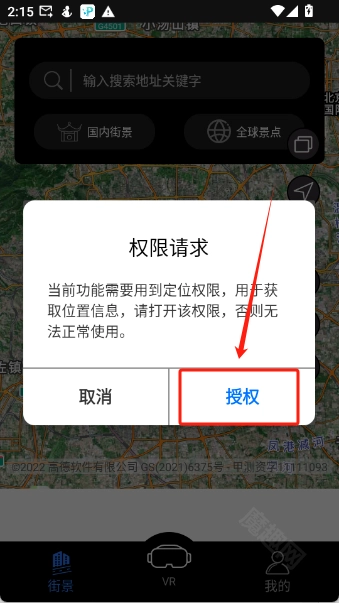 使用这款3D北斗侠街景时,需要获取定位权限,请点击“授权”以授予手机定位权限。