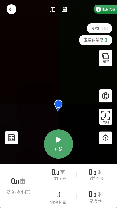 绕地模式:开启该模式后,用户只需环绕待测量的土地行走,GPS便会自动记录行走轨迹并完成定位,最终自动算出土地的面积。