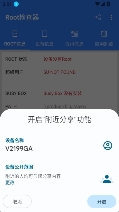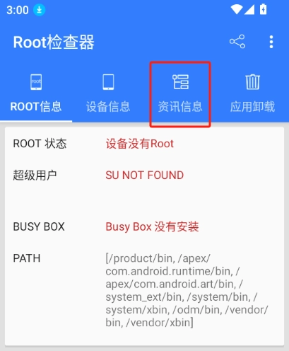 root信息查询:支持查询root状态、超级用户情况、busybox的安装状态以及path路径信息