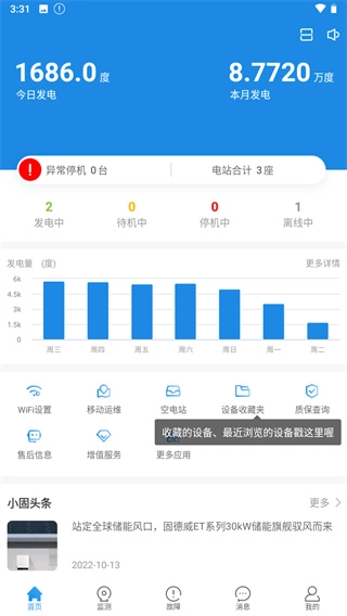 首页清晰呈现账户内所有电站的总数,近一周的发电量数据直观可见。点击首页图表区域或“更多详情”,您能够查看当月、当年乃至历年的发电数据。