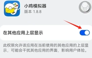 只需开启小鸡模拟器的“在其他应用上层显示”权限,就能启动游戏了。