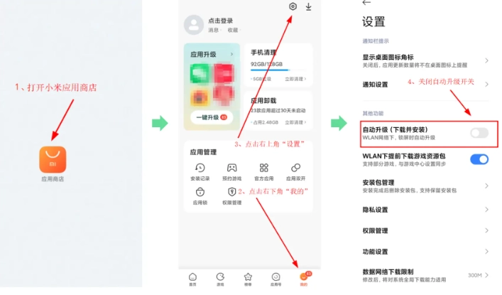打开“小米应用商店”,点击左上角的三条横线菜单图标,进入后选择“设置”选项。在设置页面中找到“自动更新应用”,将其调整为“不自动更新应用”。