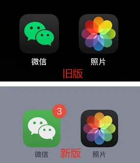 iOS微信的深色模式图标不再是“绿图黑底”样式,而是恢复为浅色图标,仅进行了简单的变暗处理。
