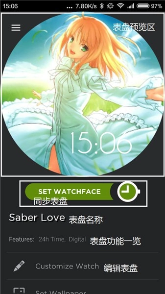 在这里补充说明一下,手表端的操作十分简便,目前仅具备更换表盘这一项功能,且可供更换的表盘仅限于此前通过watchmaker从手机同步至手表的那些。只需单击图中的齿轮图标即可完成操作。