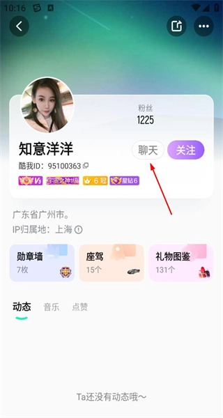 进入已选中用户的个人主页后,查看其粉丝数量等相关信息,找到聊天、关注等功能选项,即可开展互动操作。