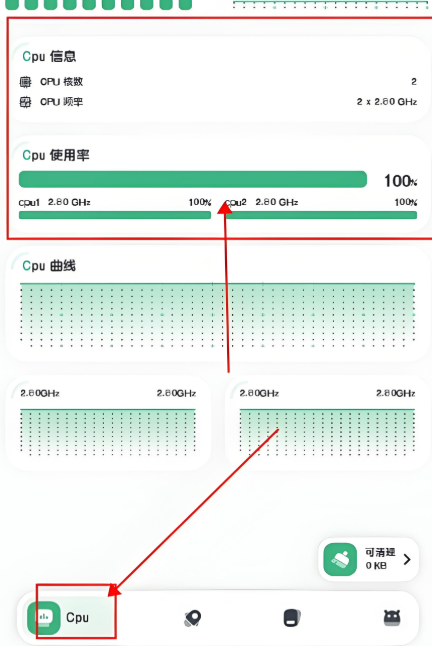 软件启动后,主界面会清晰展示手机当前的实时运行状态,其中涵盖了CPU核心的相关信息以及实时使用率,能够直观地呈现出CPU的负载状况。