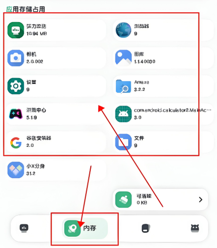 内存页面会详细展示各个应用占用的存储空间,便于用户迅速找出那些“内存大户”应用并开展清理操作。