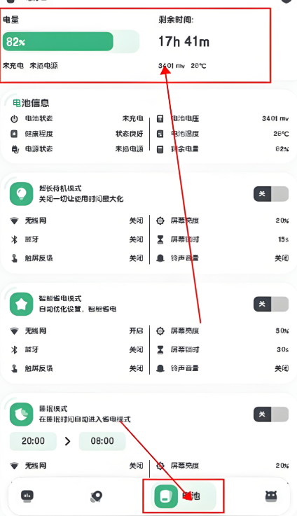 点击“电池”模块,能够查看剩余电量、电池健康状况、充电信息以及耗电应用排行,还可以预测剩余使用时间,助力用户优化电量管理。