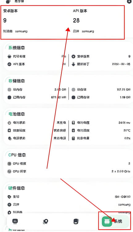 此外,该软件具备设备信息查询的功能,能够展示安卓系统版本、手机型号、品牌、制造商等关键参数,帮助用户全面掌握手机的硬件配置情况。