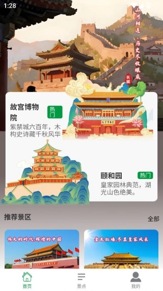借助精准的定位功能,首页会自动呈现周边的景点信息以及语音讲解的入口。
