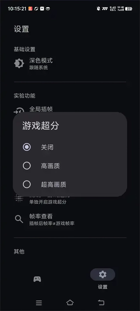 2、将游戏导入后,挑选适配的功能选项,例如全局插帧、插帧模式、触屏调节、Monster+、测试游戏超分、帧率查看等。