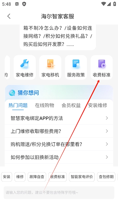 2、进入客服聊天页面后,点击“收费标准”
