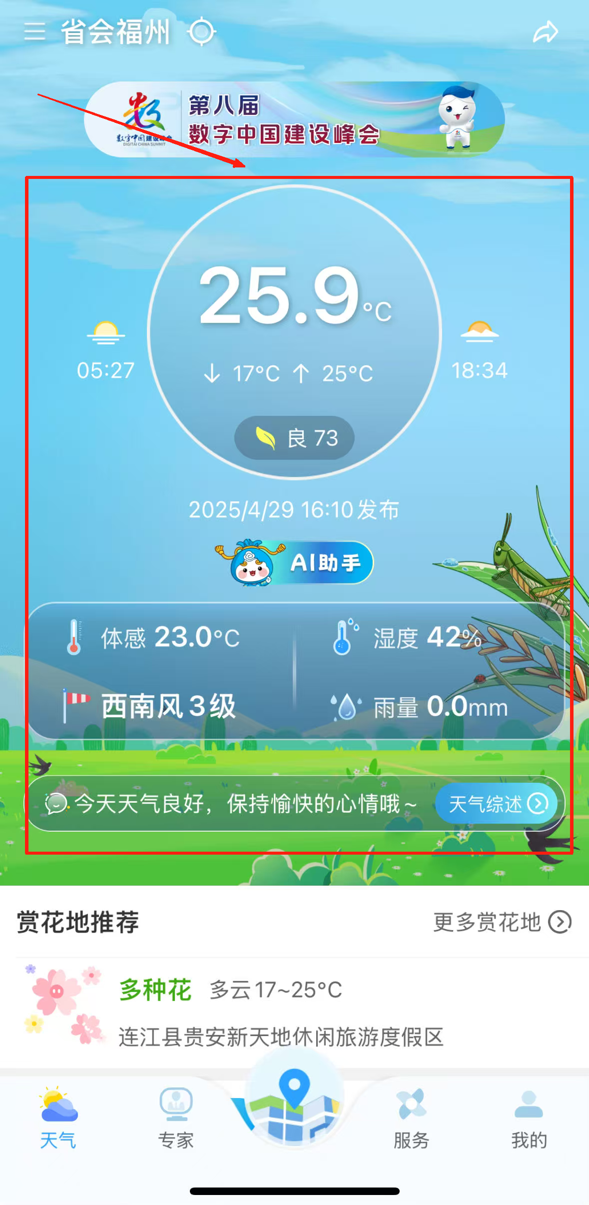 1、已构建覆盖福建省1700多个乡镇街道的精细化预报体系,搭配地图定位功能,点击即可查询对应区域预报;同时将生活指数以卡片化形式呈现,让信息获取更高效。