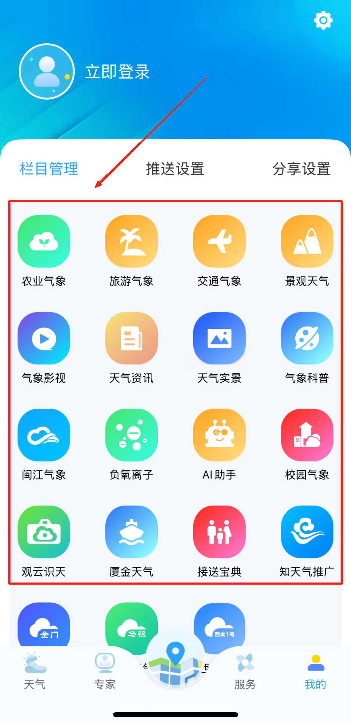 3、你可以在我的专项服务界面,根据自己的需求定制农业气象、交通气象这类专业数据,还能借助备忘录功能,把重要的天气提醒记录下来。