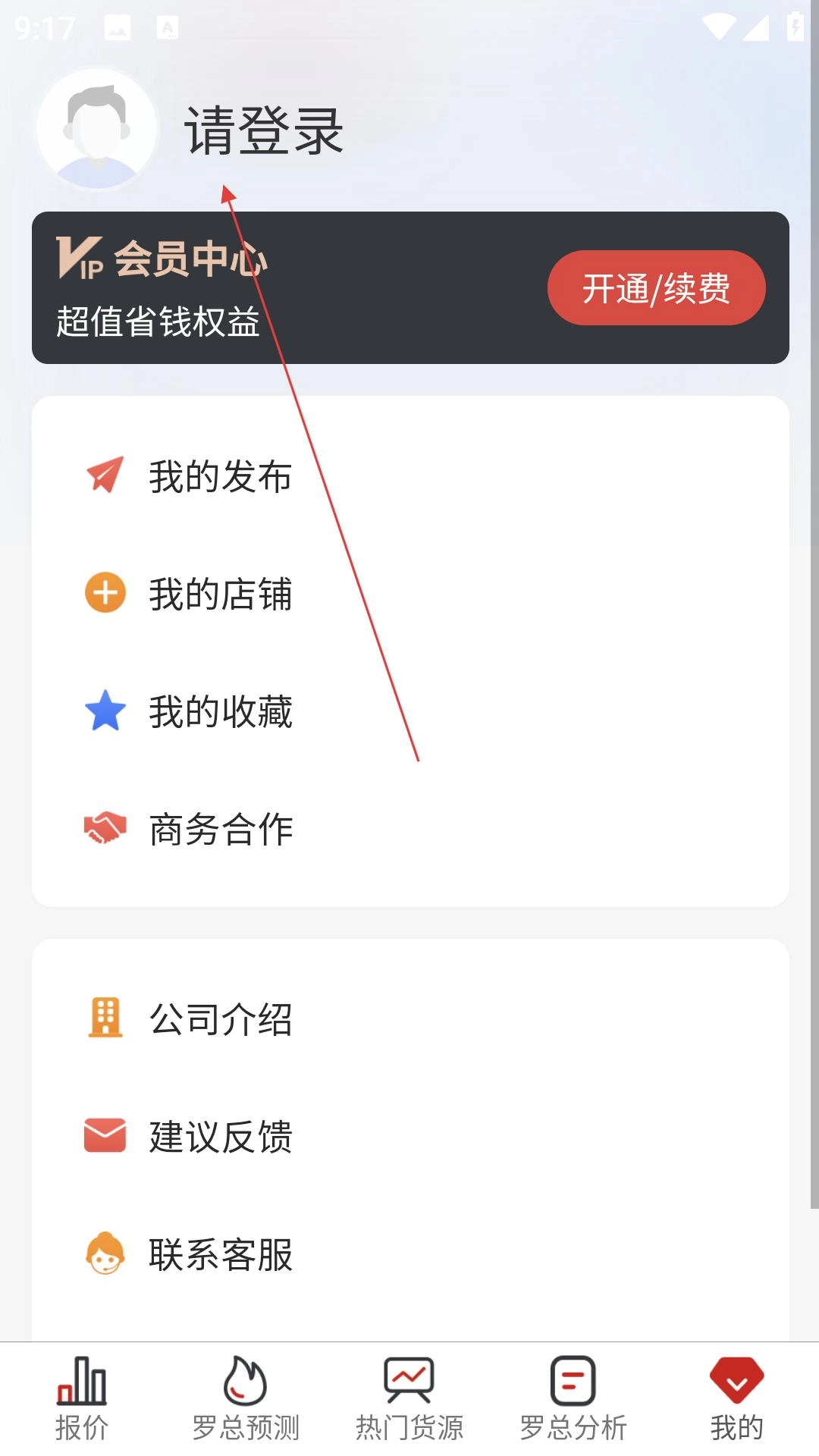 3、我的页面需要登录才能使用,具备发布内容、店铺管理等功能,支持业务管理操作,还可以查看公司介绍以及联系客服。