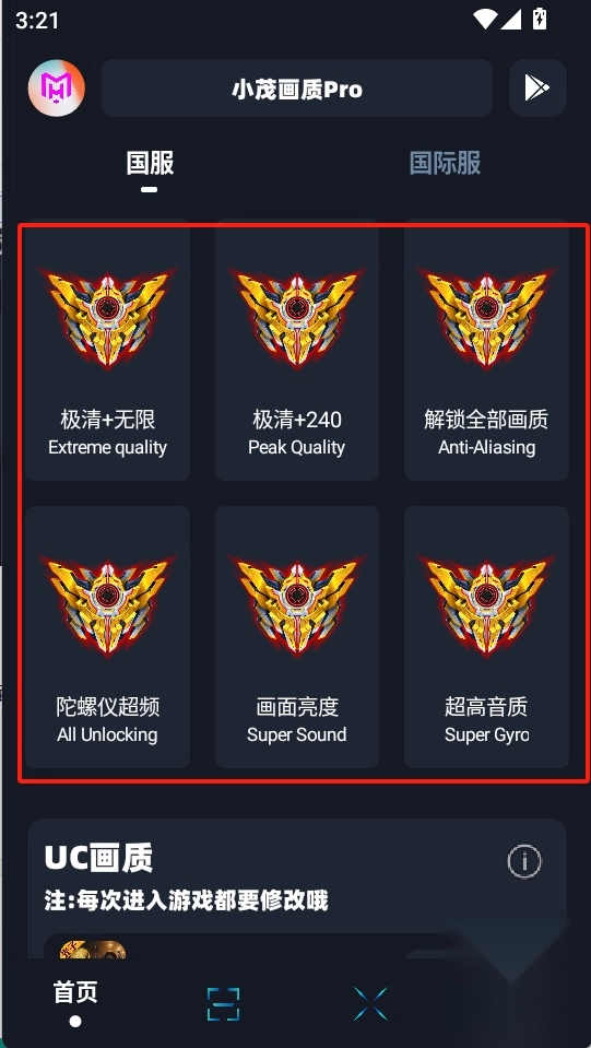小茂画质助手pro是一款功能十分强大的游戏画质调整工具,支持自定义代码和恢复配置,手机安装这款助手后,能让我们获得更出色的游戏体验。它不仅支持120帧画质,还可调节极清画质、无限帧率、画面亮度以及超高音质等参数。此外,正版小茂画质助手pro还新增了准星功能,用户可以随时进行准星设置,是游戏爱好者必备的一款画质优化工具。