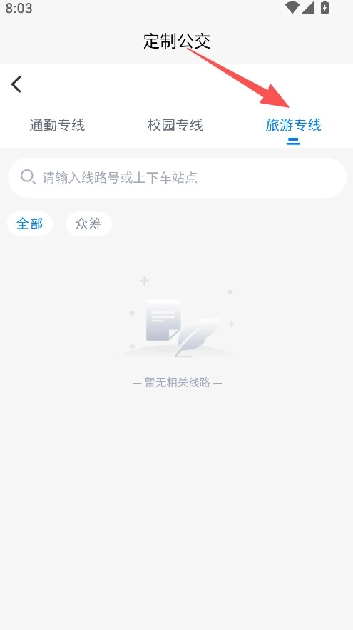 2、在定制公交页,选择旅游专线分类。