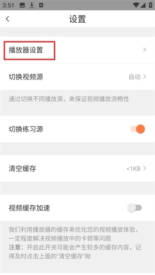 3、打开【设置】页面,点击【播放器设置】进入相应界面。