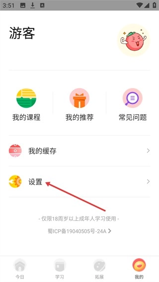 2、进入【我的】页面后,点击【设置】选项,即可进入设置界面。