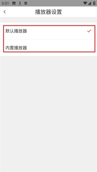 4、进入【播放器设置】页面后,可在【默认播放器】与【播放器】两个选项中进行选择,以此完成视频播放工具的设置。