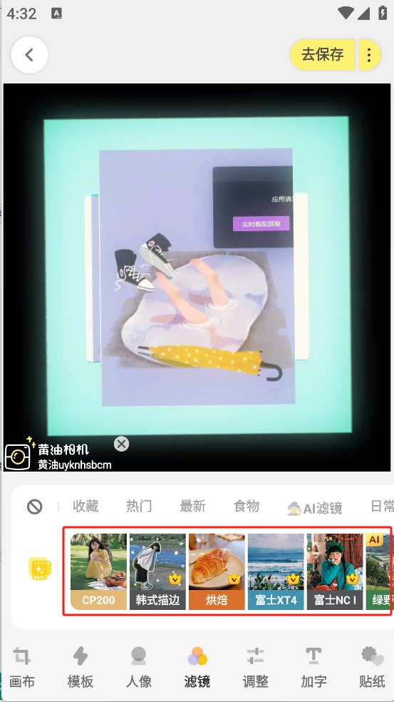4、图片编辑:提供多种滤镜选项,用户可左右滑动屏幕切换不同的滤镜效果;