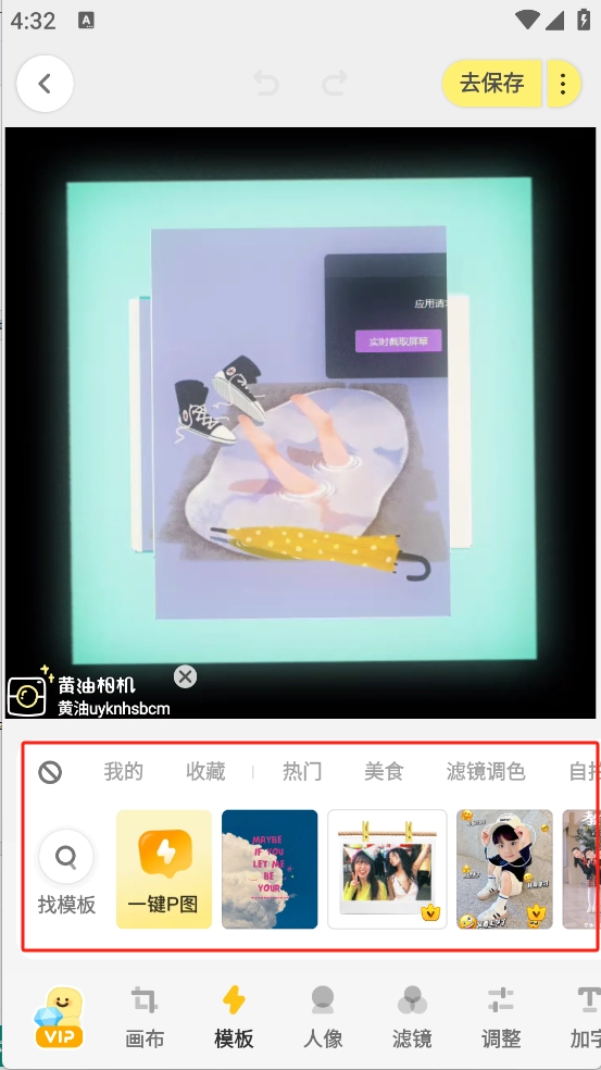 4. 在开放社区里,您能收藏模板,还可借助「Ding」一键使用模板,不用再因缺少修图灵感而困扰。