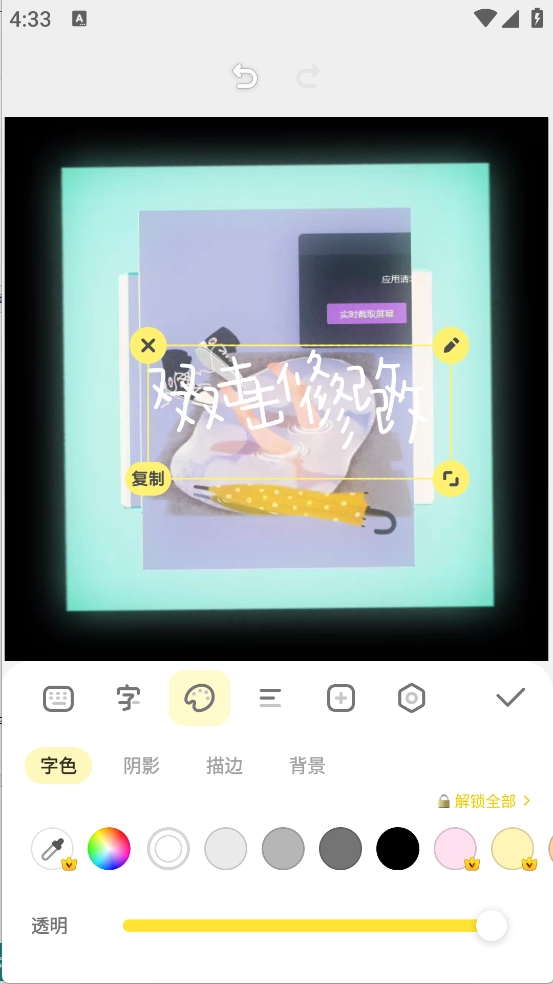 5、文字编辑功能:支持在图片上添加文字,还能对文字的字体、大小与颜色进行选择设置。