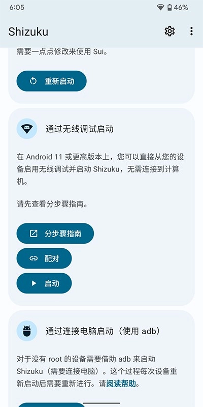 Shizuku 支持通过以下三种方式启动。