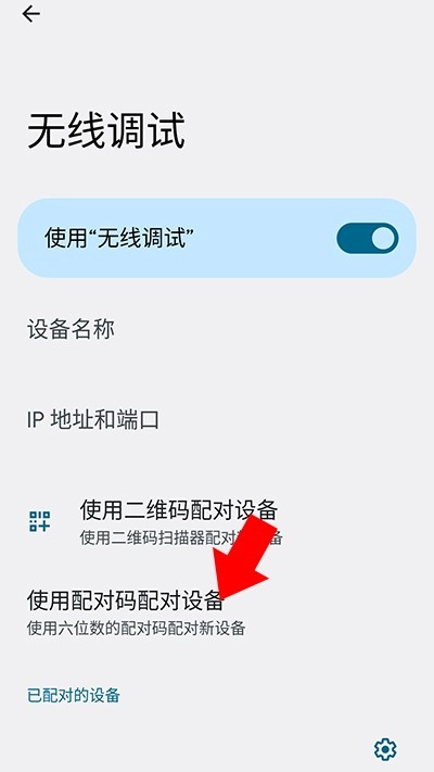 点按“无线调试”中的“使用配对码配对设备”