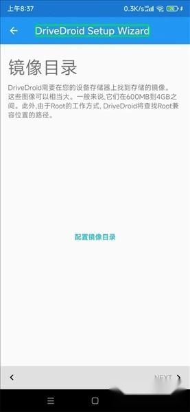 接下来要进行镜像目录的选择操作。点击“配置镜像目录”按钮后,系统会弹出申请存储权限的对话框,此时点击“允许”按钮。接着选择你希望程序使用的文件夹,点击“使用此文件夹”按钮,并在随后弹出的对话框中再次选择“允许”。待程序加载完成后,点击“next”按钮即可继续下一步。