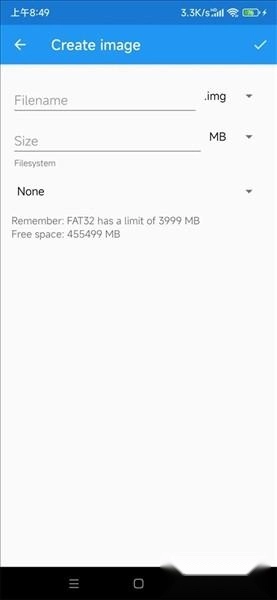 打开新建映像的界面,在第一个编辑框中填入你想要创建的映像名称,第二个编辑框则输入计划为该映像分配的预留空间——这个数值建议根据你准备制作的系统写入后的实际大小来确定,比如若要制作Windows10系统的启动U盘,预留空间最好设置为8GB。等预留空间输入完毕后,点击“create”按钮,程序就会开始创建映像了。