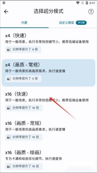 3.你可以在x4(快速)、x4(画质-常规)、x16(快速)、x16(画质-常规)、x16(画质-绘画)这些选项中自由切换。