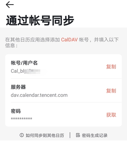 4. 随后,用户即可查看账号信息,这些信息可复制到其他日历应用里供使用。