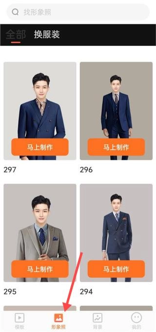 2、切换到形象照页面,选择我们需要制作的模版。