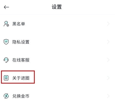 2. 在设置页面中,找到并点击关于进圈按钮。