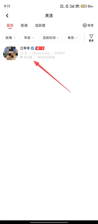 2、在关注列表中找到需要取消关注的用户,点击进入对方的主页。