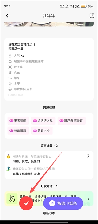 3、进入用户主页后,点击下方红色的按钮,展开操作选项。