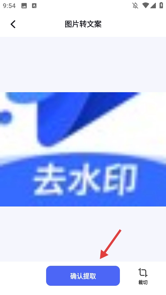 2、在图片转文案页面点击【裁切】按钮,即可进入裁切编辑界面。