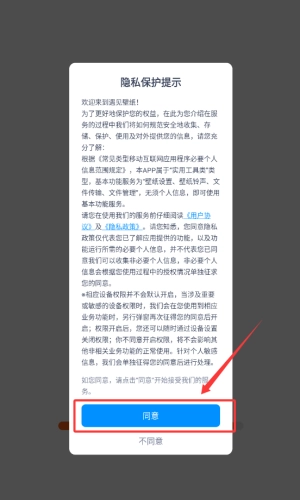 1、在隐私提示页,点击被红框标注的同意按钮。