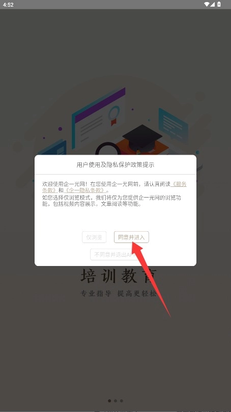 1、首次使用前请仔细阅读用户服务协议与隐私政策,确认无误后点击同意,再通过相应选项进入应用。