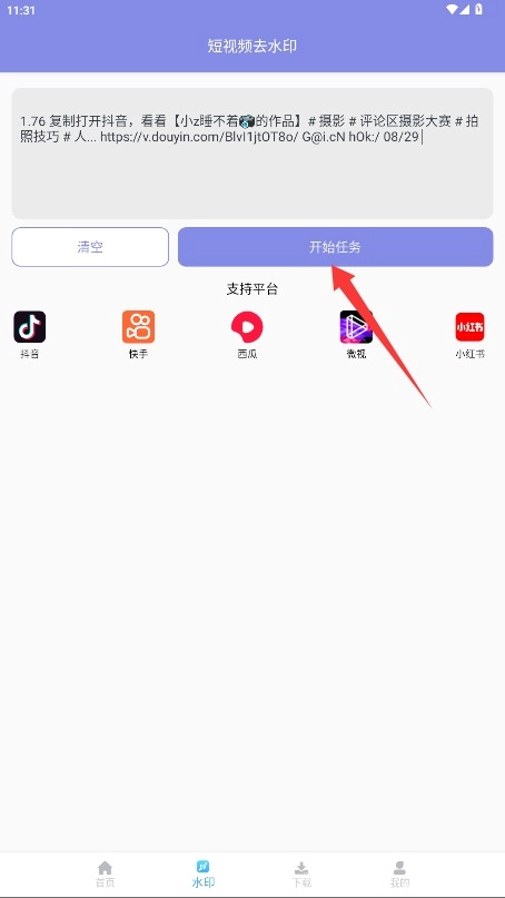 3、进入短视频去水印功能页面后,把要处理的视频链接复制粘贴到指定输入框里。
