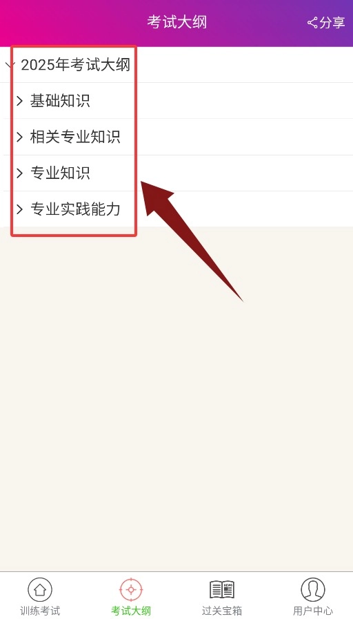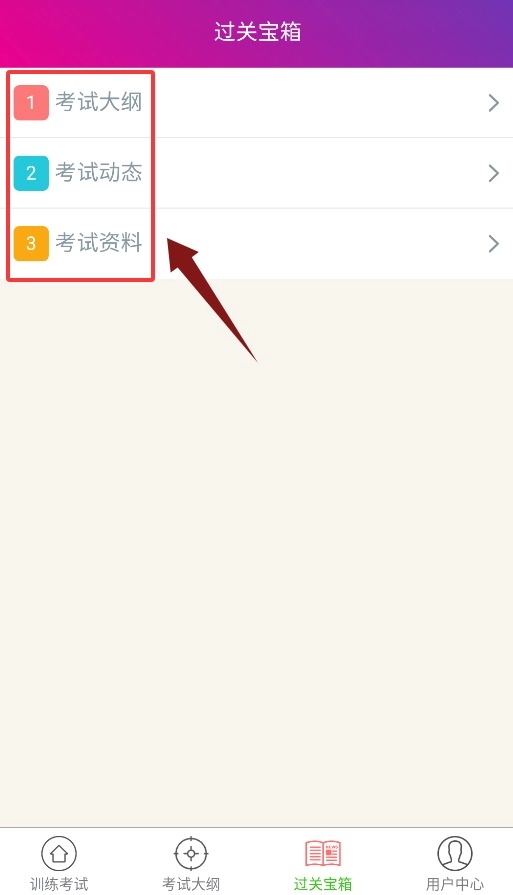4、过关宝箱集成考试大纲、最新动态与复习资料等备考实用工具。